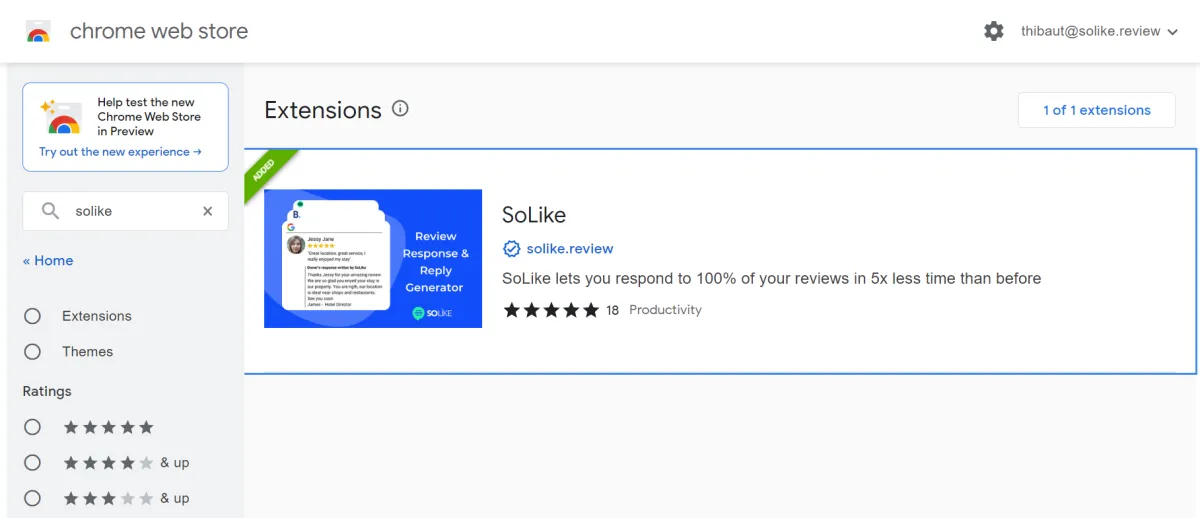 The plugin Chrome can be dowloaded on this page. (https://chrome.google.com/webstore/detail/solike-r%C3%A9ponses-aux-avis/idmbheepbkdljeocinjlenpfmnpalfcb?hl=fr) Once dowloaded you will be directed to a new page where you will get all the steps to start generating review responses powered by AI.